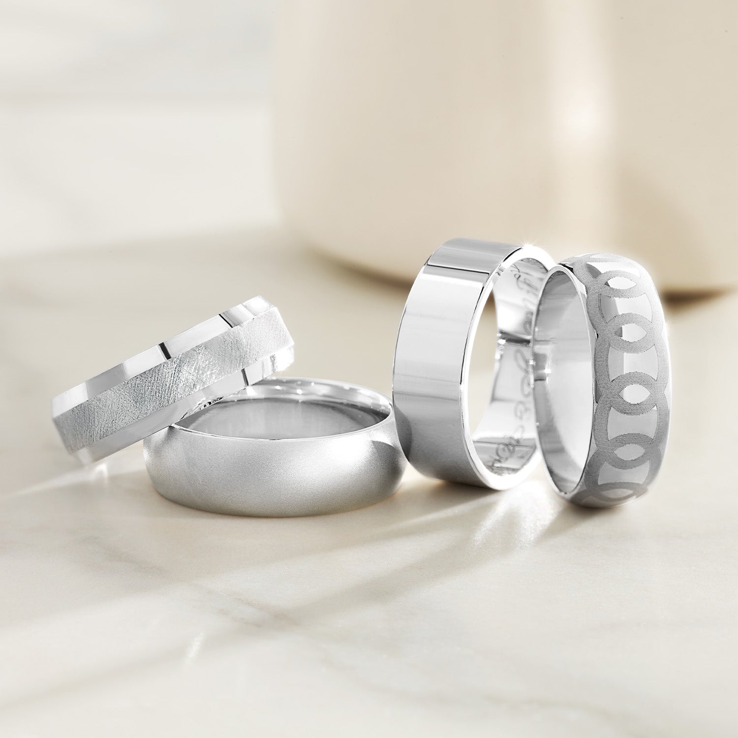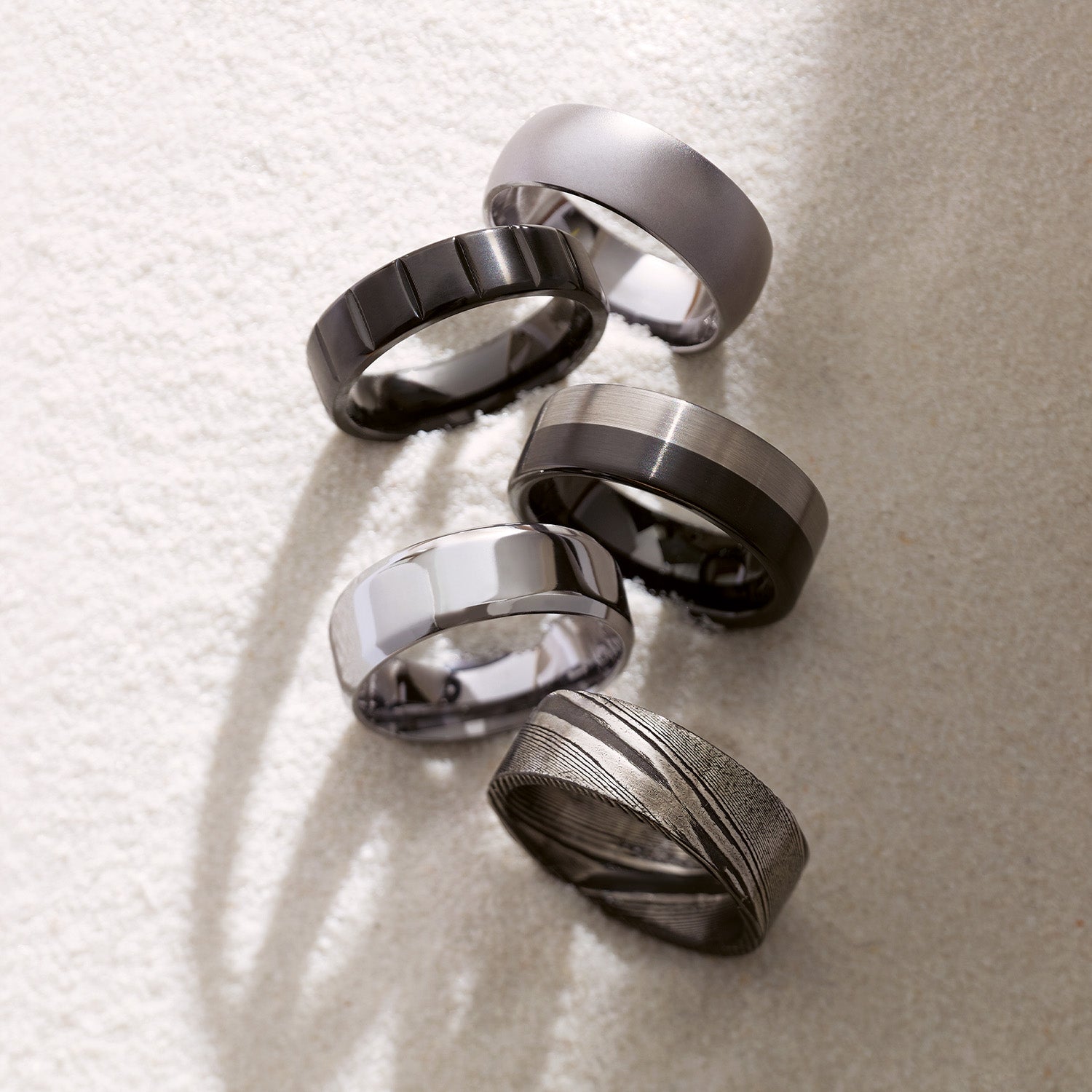 Tungsten carbide is an alloy of the elements tungsten and carbon. If you're looking for jewelry that will stand up to extreme wear and tear, tungsten carbide is the metal for you. Out of all the metals, this alloy is the closest to scratch-proof you can get. Offering a darker gray color, tungsten carbide is often chosen for its unique appearance. It can be finished with a high shine or a brushed satin look, as well as carved and inlaid with stones.