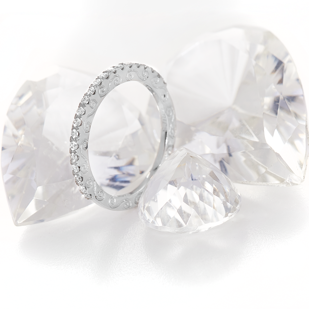 Diamonds and other gemstones that rank high on the Mohs scale are particularly well suited for a platinum setting. Since platinum prongs show significantly less wear than gold and silver, your stones will be more secure. Similar to gold and sterling silver, platinum will be stamped on the inside edge, usually indicating what percentage it is as well.